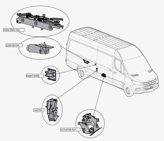 - The door is remote operated, the driver is able to control the door right from their seat.